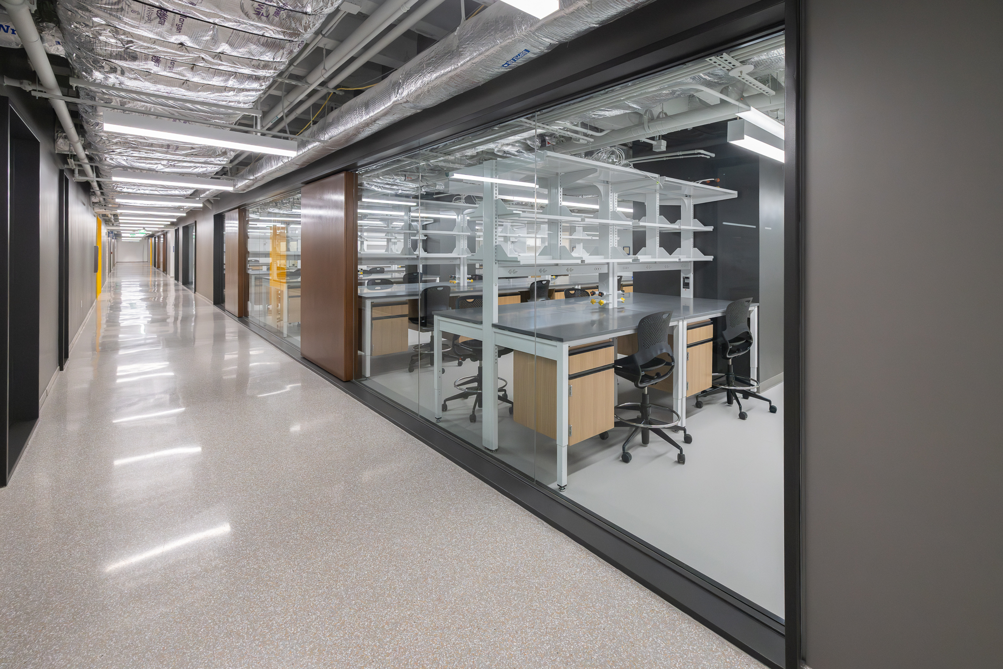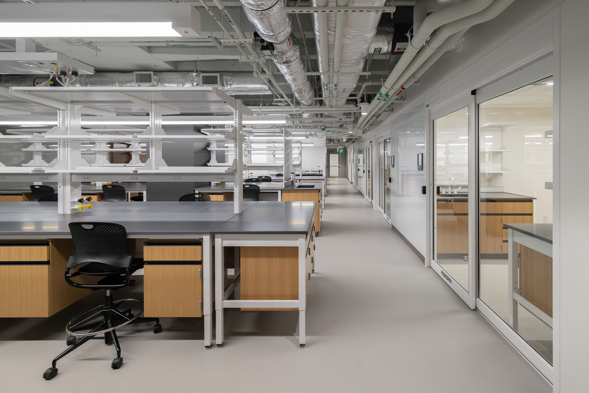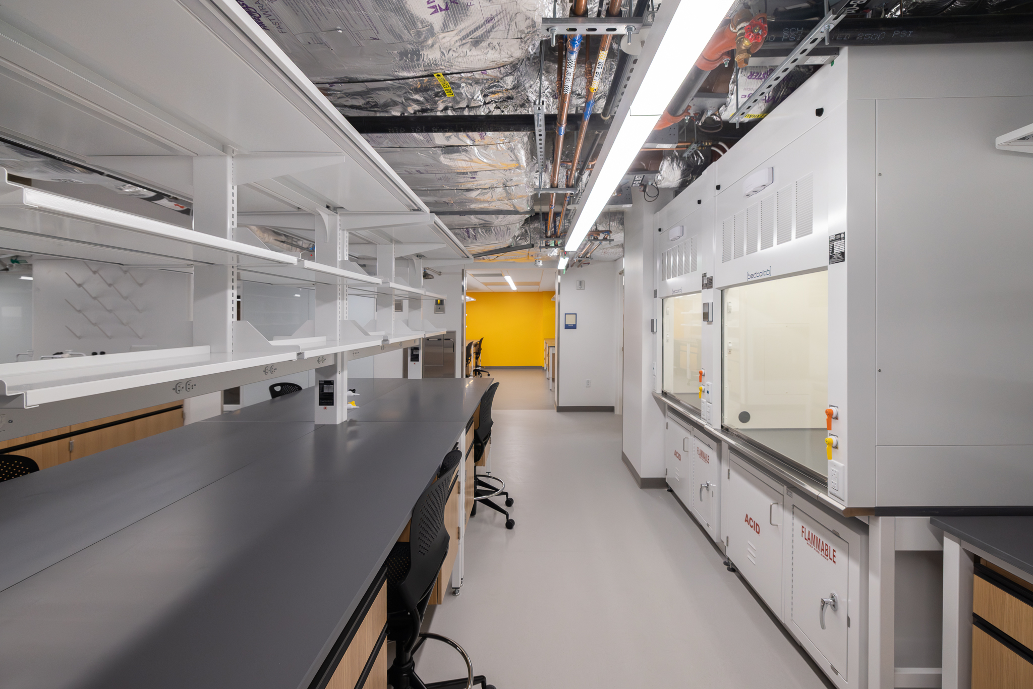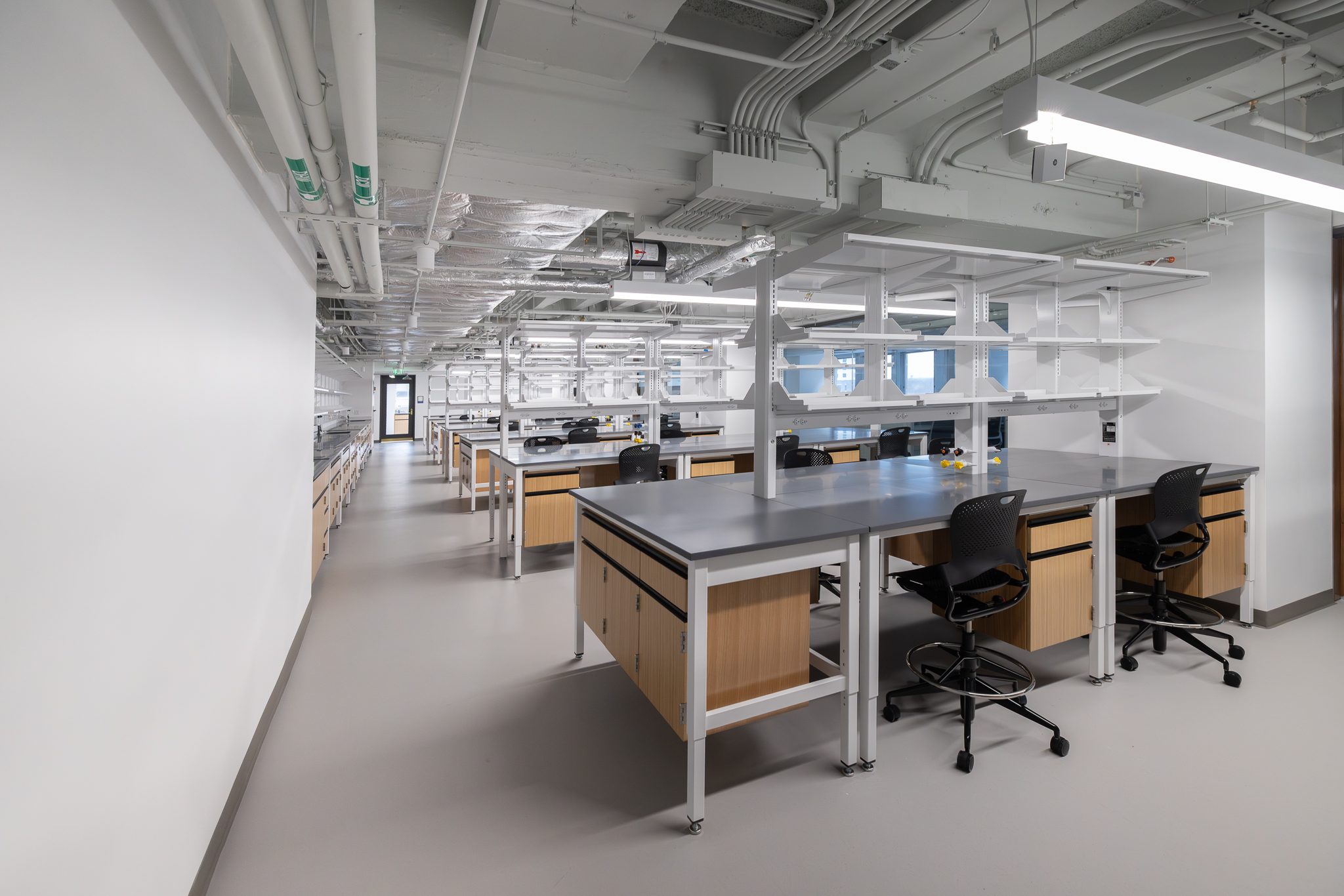 The laboratory bench systems, wood casework, and fume hoods featured high-end finishes and custom options, demanding close collaboration among all project partners. Through detailed planning, proactive communication, and a shared commitment to quality, H2I Group successfully delivered a solution that met both functional requirements and design expectations.
