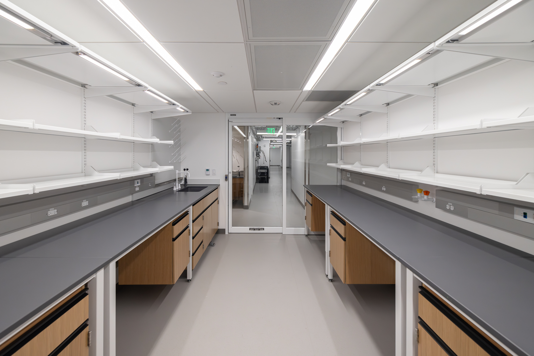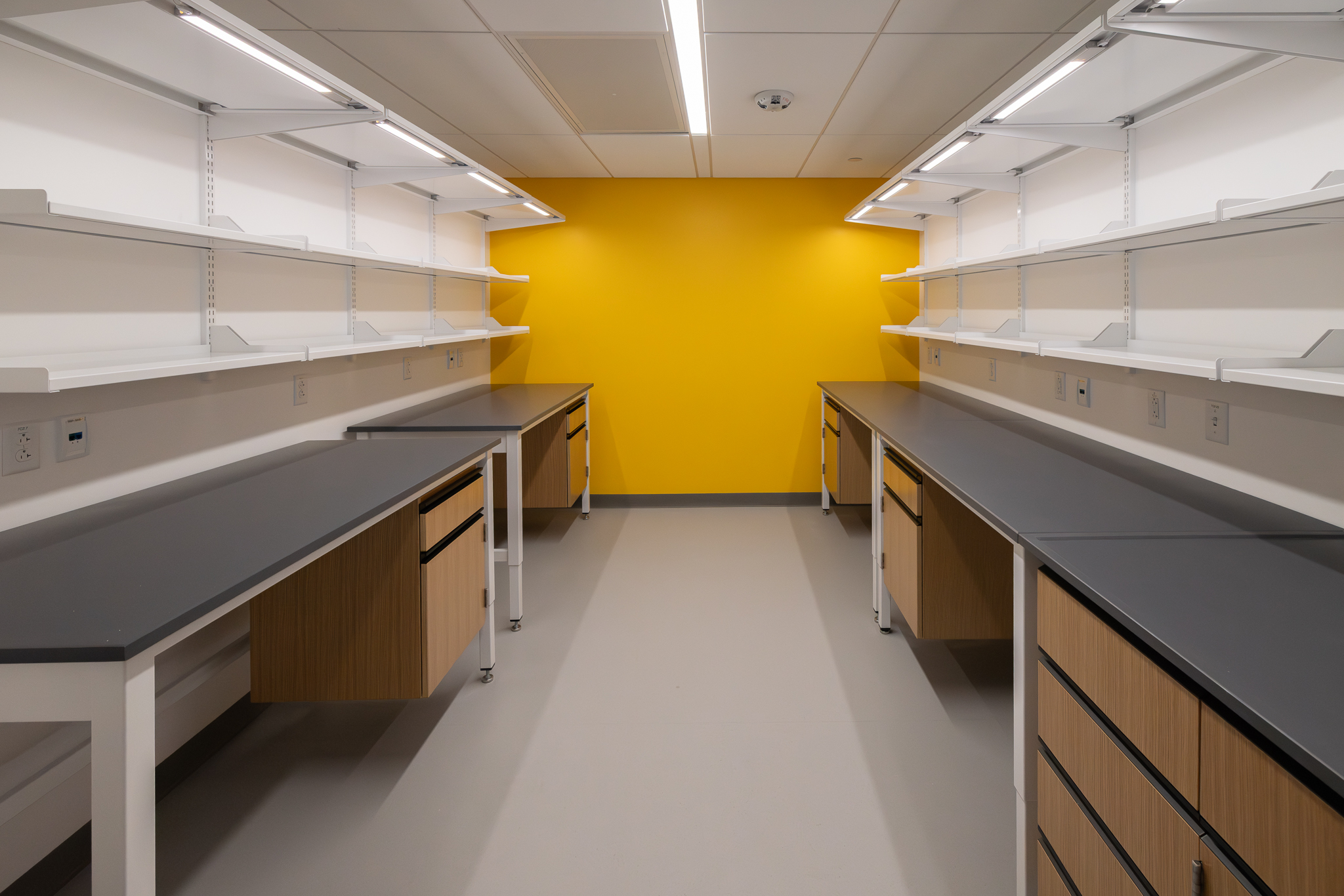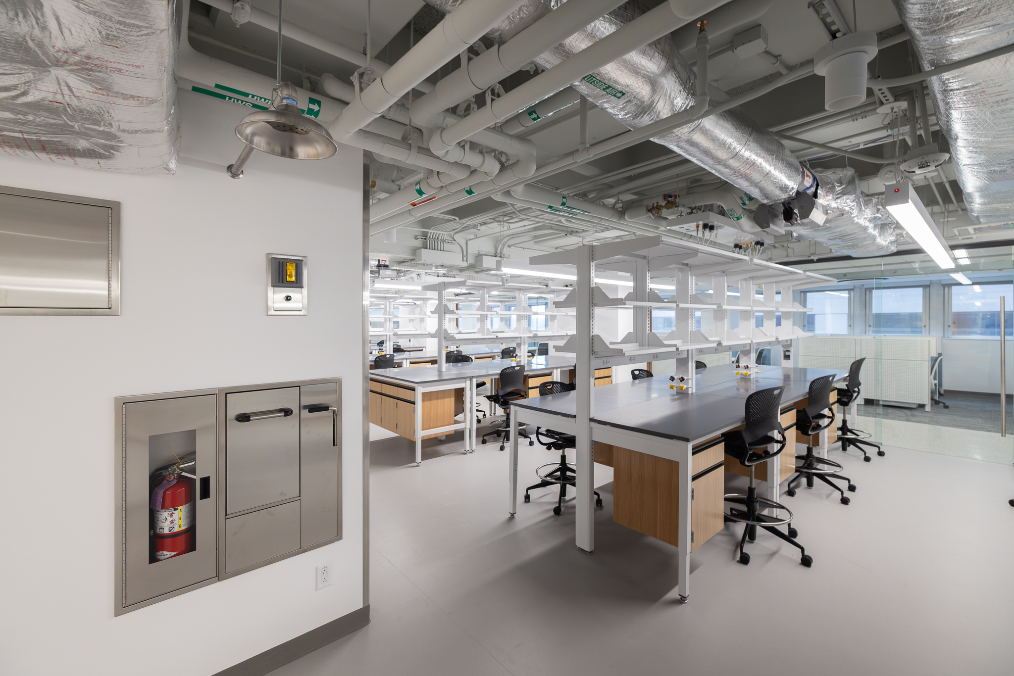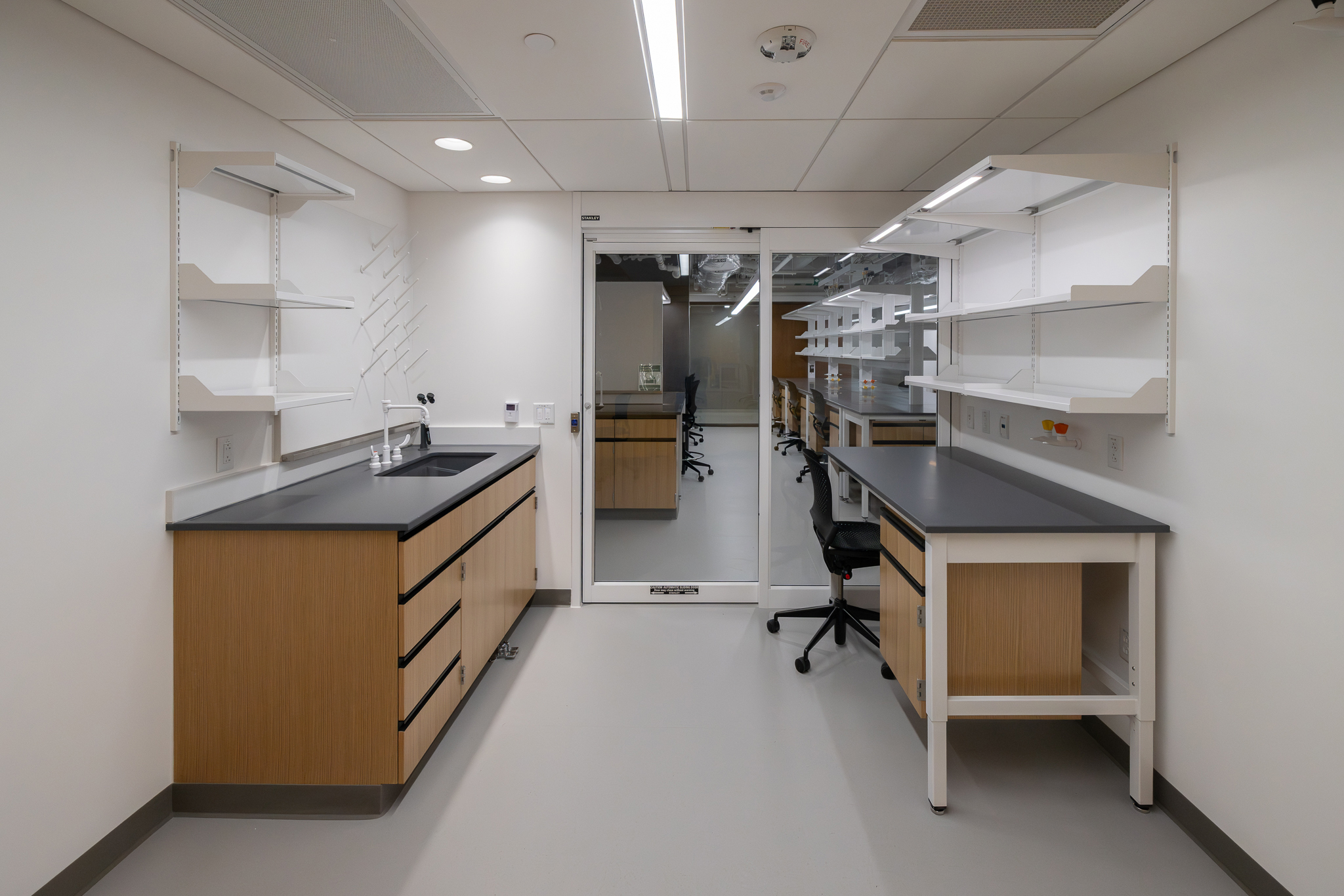 The laboratory bench systems, wood casework, and fume hoods featured high-end finishes and custom options, demanding close collaboration among all project partners. Through detailed planning, proactive communication, and a shared commitment to quality, H2I Group successfully delivered a solution that met both functional requirements and design expectations.