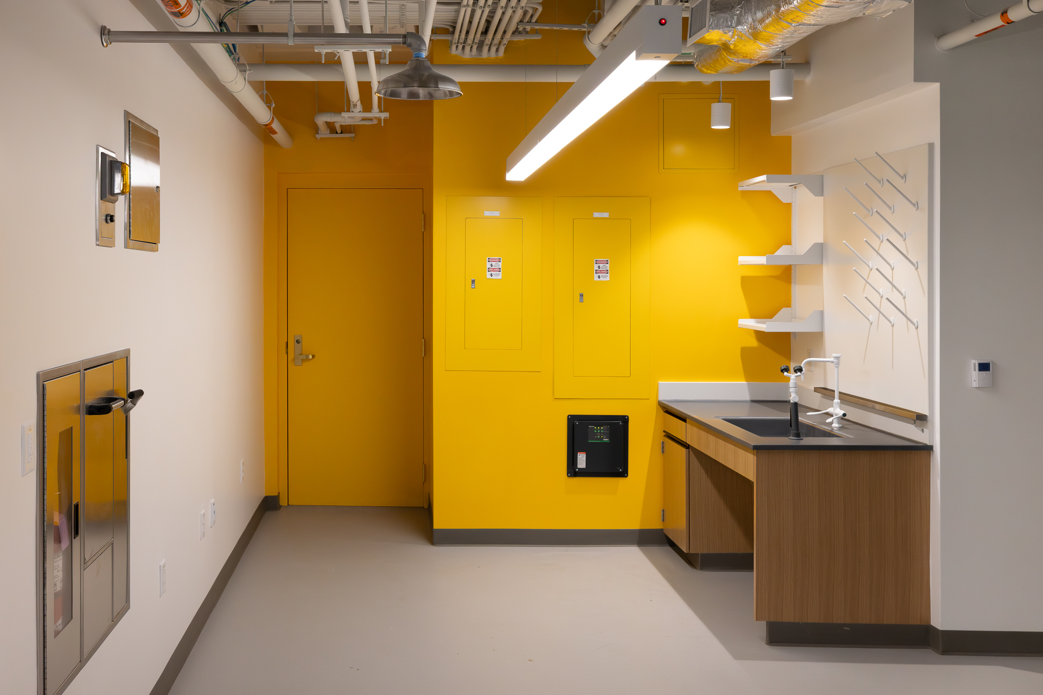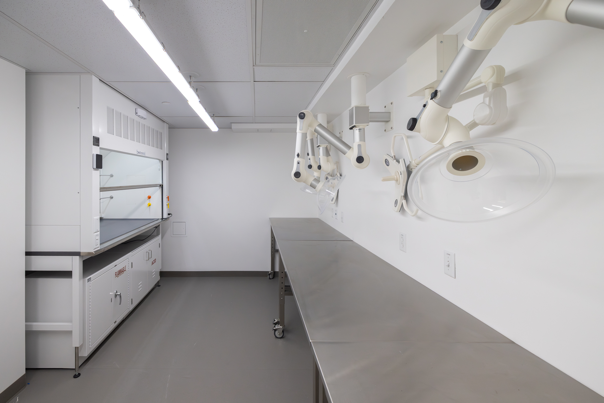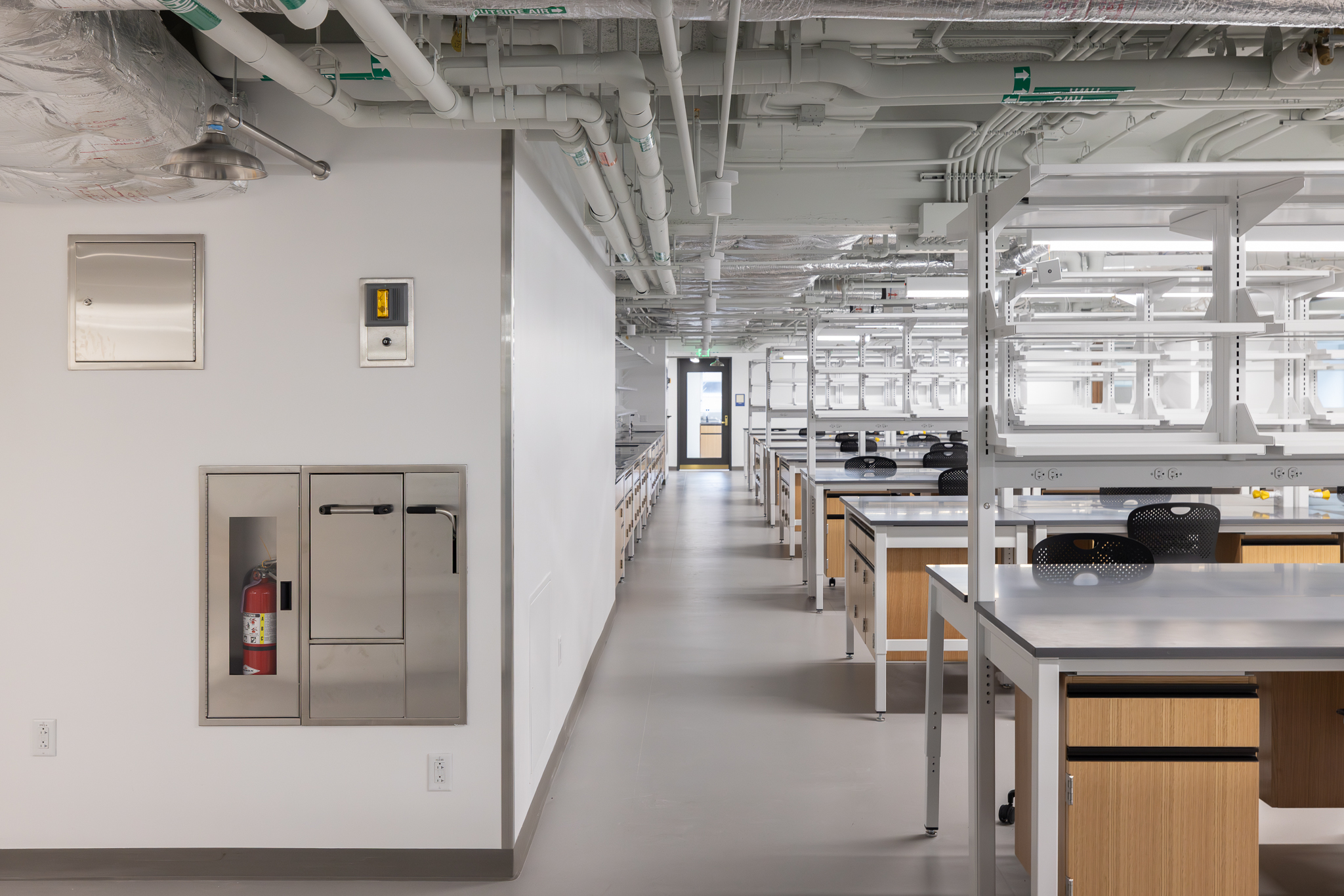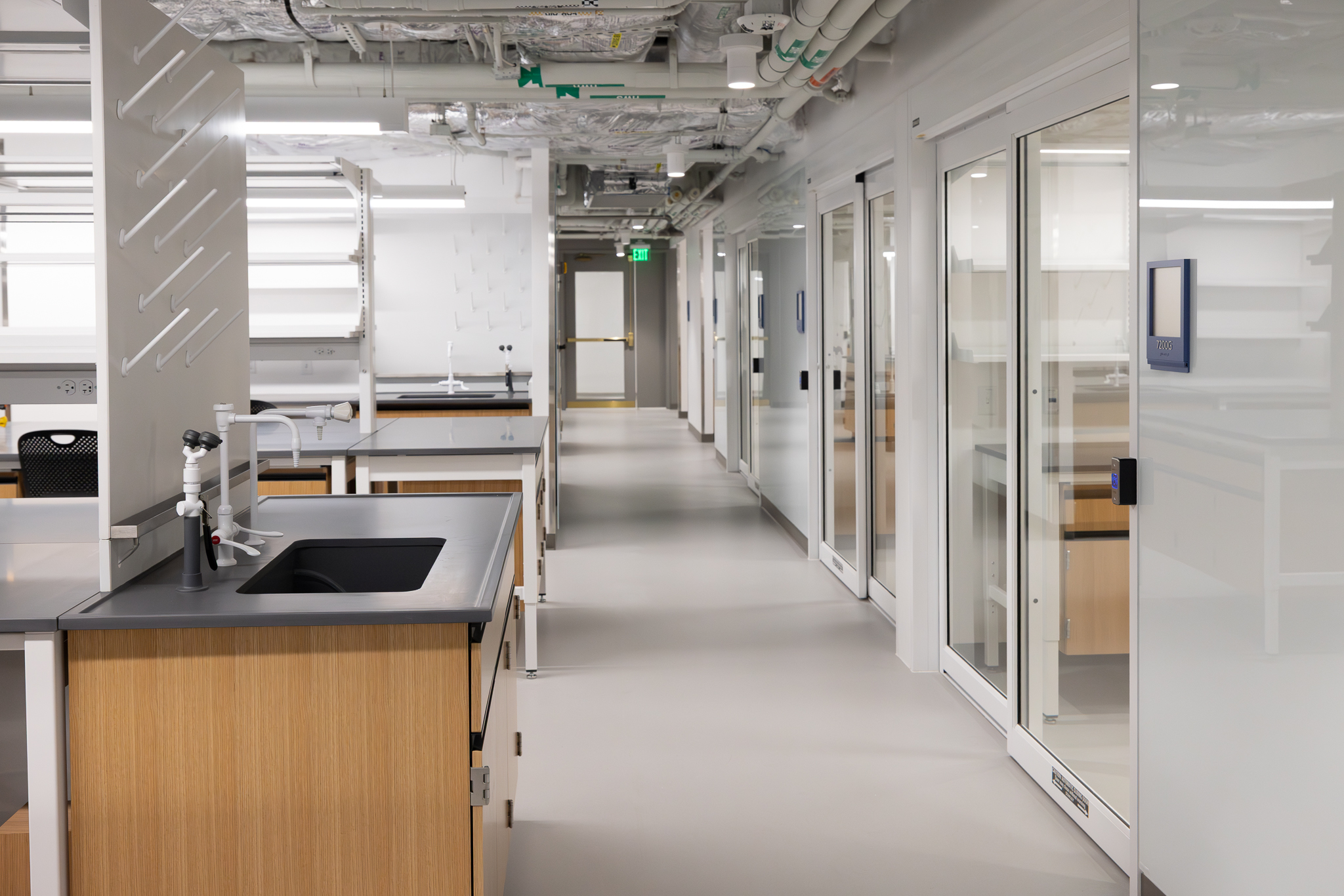 The laboratory bench systems, wood casework, and fume hoods featured high-end finishes and custom options, demanding close collaboration among all project partners. Through detailed planning, proactive communication, and a shared commitment to quality, H2I Group successfully delivered a solution that met both functional requirements and design expectations.